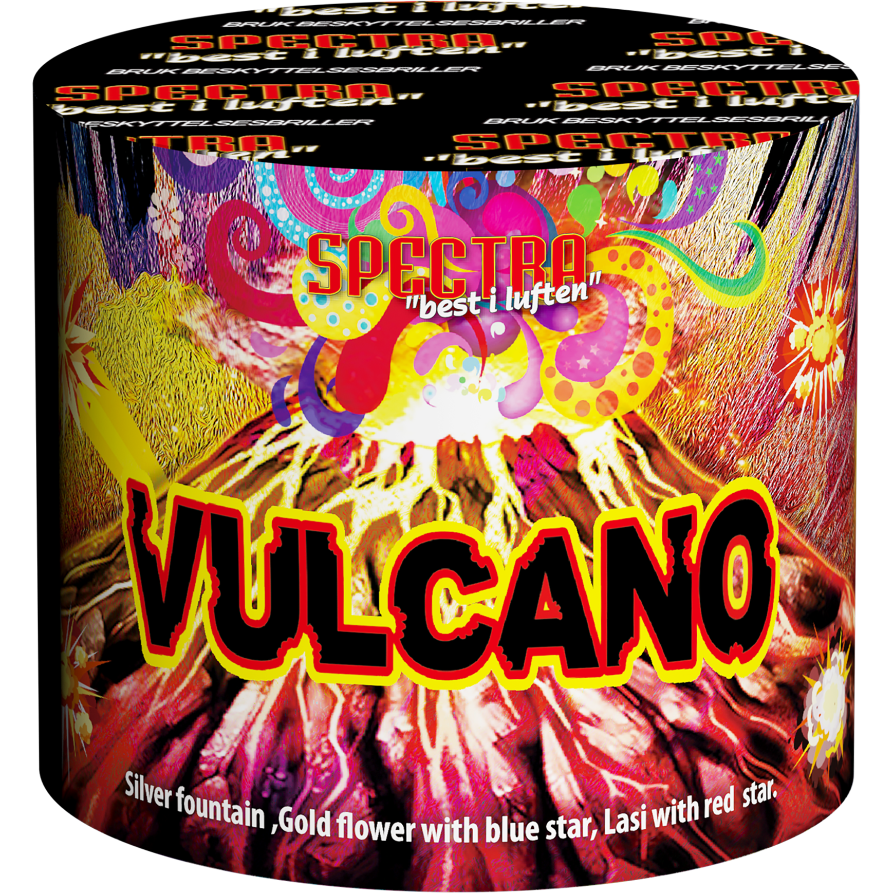 Fontene som varer i 45 sekunder. Flotte effekter i gull og sølv, med innslag av blått og rødt.